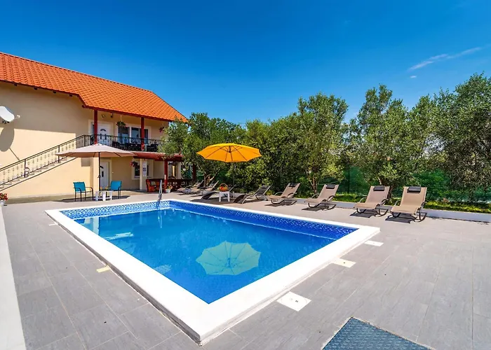 يُمكنك تناول الطعام بسهولة بفضل المطبخ المجهز المجهز بثلاجة وأدوات المطبخ. يقع أقرب مطار زادار على بعد 5 كم من بيت العطلات في Suhovare. يوجد المسبح الخاص للاسترخاء، بالإضافة إلى البادمينتون والبينج بونج ودارتس.